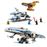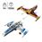 Ce modèle de chasseur stellaire E-Wing de la Nouvelle République, à construire, mesure plus de 10 cm de haut, 27 cm de long et 24 cm de large.